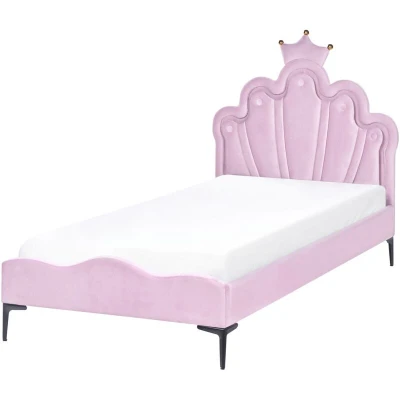 Upholstered Bed with LED Light. Let your little one feel like royalty with this enchanting single bed. Designed with a regal, crown-topped headboard, it features built-in LED lighting that offers multiple colours and modes, including strobe and smooth transitions, creating a magical bedtime atmosphere. The soft velvet upholstery adds a touch of luxury, while the sturdy metal legs ensure lasting durability. A perfect blend of elegance and practicality, this bed transforms any child’s room into a dreamy retreat. Details: Product Type: Kids Bed Style: Glam General Color: Violet, Black LED Color: Multicolour LED Colour Temperature: Neutral Material Type: Fabric Main Material: Velvet Additional Material: Metal Material Composition: 100% Polyester Fabric Upholstered Back: No LED Luminous flux: 1200 LED Type: SMD 5050 LED: Yes Storage: No Dimensions: Headrest Dimensions: 103x78 Width: 103 cm Length: 209 cm Height: 115 cm Sleeping Surface: 90x200 cm Weight: 26 kg Weight Capacity: 150 kg Offer