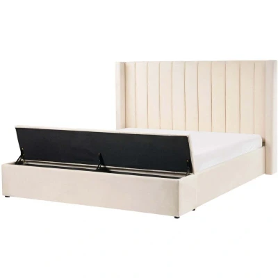 Bed with Storage Bench Velvet NOYERS 180 x 200 cm (EU Super King) Off White