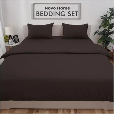 Bedding Set Super King with Fitted Sheet, Duvet Cover & 2 Pillowcases Dark Brown Microfibre 4 Piece Bed Soft, Durable Easy Care for All Season Comfort in Modern Bedroom