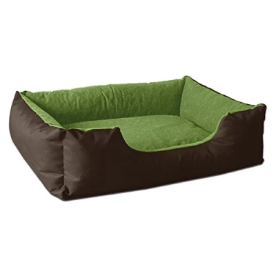 BedDog Lupi Dog Bed with Removable Washable Cover, Basket, Sofa for Small Dogs, S, Brown/Green