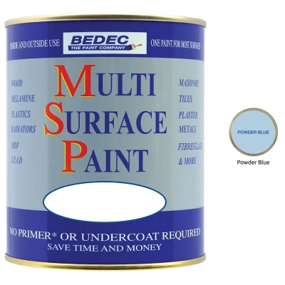 General description BEDEC MULTI SURFACE PAINT MSP is a versatile, water-based paint known for its outstanding flexibility, which helps resist flaking and peeling. It can be applied directly onto a wide range of surfaces without the need for a primer or undercoat, making it an efficient choice for both interior and exterior applications. Technical specifications Type: Water-based paint Volume: 2.5L Heat resistance: Up to 80ºC Recoatable after: 4 hours Low VOC Non-flammable Compatibility and accessories Can be used over most other paints and varnishes, including weathered Tar Varnish, Bitumen, and Creosote Recommended for use on: Wood, MDF, Metals, Plastics, Tiles, Radiators, and more For mild steel applications, use BEDEC Metal Primer if staining can occur For areas prone to staining, use BEDEC Stain Block Usage Suitable for both interior and exterior use Environmentally friendly and easy to clean up with water Resists flaking and cracking while retaining gloss for longer Microporous
