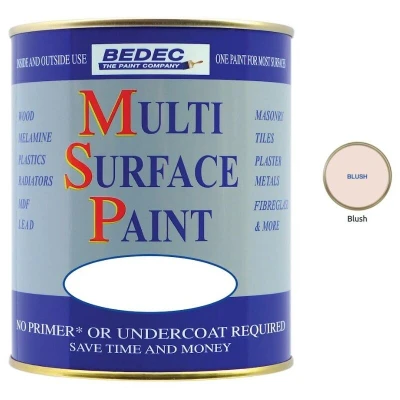 General description BEDEC MULTI SURFACE PAINT MSP is a versatile, water-based paint known for its outstanding flexibility, which helps resist flaking and peeling. It can be applied over most existing paints and varnishes, including weathered Tar Varnish, Bitumen, and Creosote. This non-yellowing paint is easy to clean with water and is suitable for a wide range of surfaces. Technical specifications Type: Water-based paint Finish: Satin Volume: 2.5L Heat resistance: Up to 80ºC Recoatable after: 4 hours Low VOC Microporous and breathable Non-flammable Compatibility and accessories Can be used directly on: Plastic, wood, metal (including radiators), plastic coated steel, cladding, brick, masonry, fibreglass, terracotta, stone, plaster, MDF, tiles, melamine, UPVC, galvanised steel, aluminium, copper, and more. No primer or undercoat needed, except for mild steel (use BEDEC Metal Primer) where staining can occur (use BEDEC Stain Block). Usage Suitable for both interior and exterior