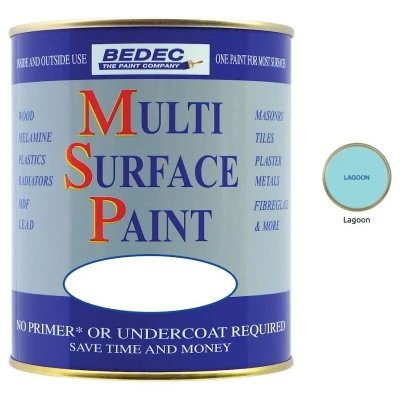 General description BEDEC MULTI SURFACE PAINT MSP is a versatile, water-based paint known for its outstanding flexibility, which prevents flaking or peeling. It can be applied over most existing paints and varnishes, including weathered Tar Varnish, Bitumen, and Creosote. This non-yellowing paint is easy to clean with water and is suitable for a wide range of surfaces. Technical specifications Type: Water-based paint Heat resistance: Up to 80ºC Recoatable after: 4 hours VOC content: Low Microporous and breathable Non-flammable Compatibility and accessories Can be used on: Wood, MDF, Metals, Plastics, Tiles, Radiators, and more No primer or undercoat needed, except for mild steel (use BEDEC Metal Primer) and where staining can occur (use BEDEC Stain Block) Usage Suitable for both interior and exterior applications Resists flaking and cracking Retains gloss for longer Chalks much less Only water is needed for thinning and cleanup