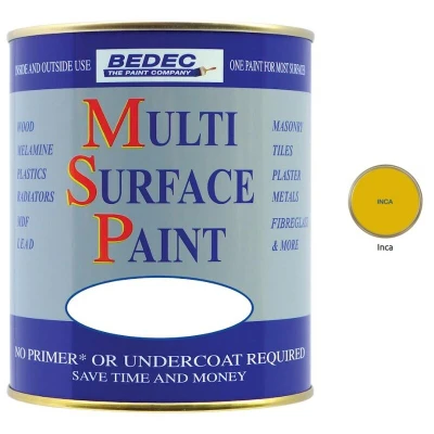General description BEDEC MULTI SURFACE PAINT MSP is a versatile, water-based paint known for its outstanding flexibility, which prevents flaking and peeling. It can be applied directly onto a wide range of surfaces without the need for a primer or undercoat, making it a convenient choice for various projects. Technical specifications Type: Water-based paint Finish: Satin Volume: 750ml Heat resistance: Up to 80ºC Recoatable after: 4 hours Low VOC Non-flammable Compatibility and accessories Can be used on: Wood, MDF, Metals, Plastics, Tiles, Radiators, and more Compatible with weathered Tar Varnish, Bitumen, and Creosote For mild steel, use BEDEC Metal Primer if staining can occur For areas prone to staining, use BEDEC Stain Block Usage Suitable for both interior and exterior applications Resists flaking and cracking Retains gloss for longer Chalks much less Cleans up easily with water No special thinners required, only water