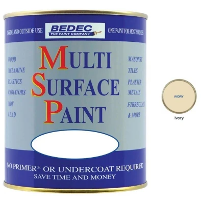 General description BEDEC MULTI SURFACE PAINT MSP is a versatile, water-based paint designed to resist flaking and peeling due to its exceptional flexibility. It can be applied directly onto a wide range of surfaces without the need for a primer or undercoat, making it a convenient choice for both interior and exterior projects. Technical specifications Volume: 750ml Heat resistance: up to 80ºC Recoatable after: 4 hours Low VOC Non-flammable Compatibility and accessories Can be used on: Wood, MDF, Metals, Plastics, Tiles, Radiators, and more Can be applied over most other paints and varnishes, including weathered Tar Varnish, Bitumen, and Creosote For mild steel, use BEDEC Metal Primer if staining may occur For areas prone to stains, use BEDEC Stain Block Usage Ideal for both interior and exterior applications Environmentally friendly and easy to clean up with water Retains gloss for longer and resists cracking Microporous and breathable, allowing surfaces to breathe Quick drying time