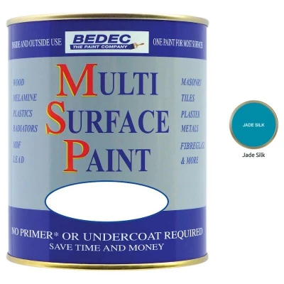 General description BEDEC MULTI SURFACE PAINT MSP is a versatile, water-based paint known for its outstanding flexibility, which prevents flaking or peeling. It can be applied over most existing paints and varnishes, including weathered Tar Varnish, Bitumen, and Creosote. This non-yellowing paint is easy to clean up with water and is suitable for a wide range of surfaces. Technical specifications Type: Water-based paint Heat resistance: Up to 80ºC Recoatable after: 4 hours Low VOC Microporous and breathable Non-flammable Compatibility and accessories Can be used on: Wood, MDF, Metals, Plastics, Tiles, Radiators, and more No primer or undercoat needed, except on mild steel (use BEDEC Metal Primer) where staining can occur (use BEDEC Stain Block) Usage BEDEC MULTI SURFACE PAINT can be used for both interior and exterior applications. It is designed to save time and money while providing a durable finish that resists flaking and cracking. The paint retains gloss for longer and is