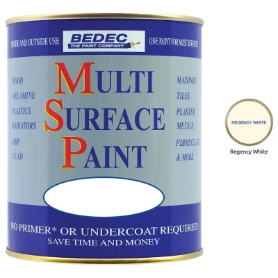 General description BEDEC MULTI SURFACE PAINT MSP is a versatile, water-based paint known for its outstanding flexibility, which helps resist flaking and peeling. It can be applied over most other paints and varnishes, including weathered Tar Varnish, Bitumen, and Creosote. This non-yellowing paint is easy to clean up with water and is suitable for a wide range of surfaces. Technical specifications Type: Water-based paint Heat resistance: Up to 80ºC Recoatable: After 4 hours Low VOC: Yes Microporous and breathable: Yes Non-flammable: Yes Compatibility and accessories Can be used on: Wood, MDF, Metals, Plastics, Tiles, Radiators, and more No primer or undercoat needed for most surfaces For mild steel: Use BEDEC Metal Primer if staining can occur For staining issues: Use BEDEC Stain Block Usage This paint is suitable for both interior and exterior applications. It is designed to save time and money while providing a durable finish that resists flaking and cracking. It retains gloss for