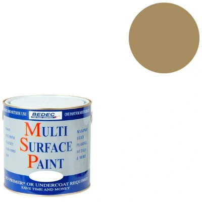 General description BEDEC MULTI SURFACE PAINT MSP is a versatile, water-based paint known for its outstanding flexibility, which prevents flaking or peeling. It can be applied over most existing paints and varnishes, including weathered Tar Varnish, Bitumen, and Creosote. This non-yellowing paint is easy to clean up with water and is suitable for a wide range of surfaces. Technical specifications Type: Water-based Finish: Satin Volume: 250ml Heat resistance: Up to 80ºC Recoatable after: 4 hours Low VOC Microporous and breathable Non-flammable Compatibility and accessories Can be used directly on: Plastic, wood, metal (including radiators), plastic coated steel, cladding, brick, masonry, fibreglass, terracotta, stone, plaster, MDF, tiles, melamine, UPVC, galvanised steel, aluminium, copper, and more. No primer or undercoat needed, except on mild steel (use BEDEC Metal Primer) where staining can occur (use BEDEC Stain Block). Usage Suitable for both interior and exterior applications.