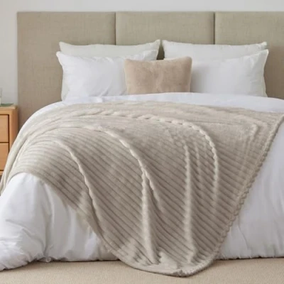 【Upgraded Striped Blanket】The upgraded striped fleece blanket features a higher-weight fabric, enhancing warmth and comfort. The widened stripes highlight the three-dimensional and sensory qualities of the blanket, creating a gentle and relaxed visual appeal. This further enhances its decorative characteristics, providing an elevated experience for both warmth and style. 【Soft & Cozy】Indulge in the luxurious softness of BEDELITE fleece blankets, crafted from 100% microfiber polyester. With a plush 300GSM double-sided design, these fuzzy blankets offer a dense, fluffy texture for enhanced comfort. Combining 3D striped texture with fluffy fleece ensures warmth while also being lightweight and breathable. 【Versatile Usages】Experience ultimate coziness and warmth during your leisure time. Whether snuggled up for a nap or immersed in a TV series on the couch, these warm blankets provide the perfect companionship. Additionally, they make an ideal accessory for camping or travel adventures, ensuring comfort wherever you go. 【All Seasons Suitable】Embrace the perfect balance of warmth and lightness throughout the year with BEDELITE cozy blankets. The 300GSM fleece throw blankets offer warmth during chilly fall and winter nights, while remaining breathable for outdoor enjoyment in spring or summer. Delicate and distinct textures can dress different seasons and festivals, which also is a thoughtful gift to share coziness. 【Easy to Care】Reinforced with neat stitches for strong seams, our blankets are designed for durability. Machine washable and resistant to shrinkage, color fading, and unraveling. Enjoy peace of mind with our 90-day satisfaction guarantee—contact our 24-hour customer service team for any assistance, and we'll ensure your satisfaction.