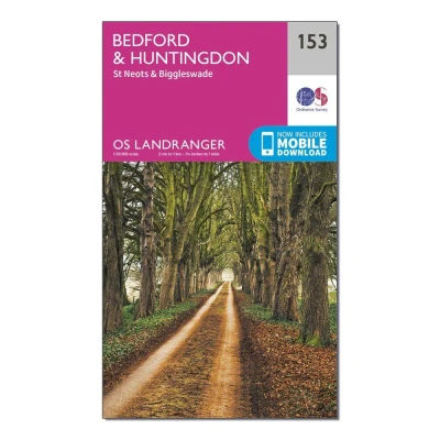Bedford & Huntingdon Map St Neots Biggleswade Ordnance Survey OS Landranger 153 England Walks Cycling Days Out Maps Adventure