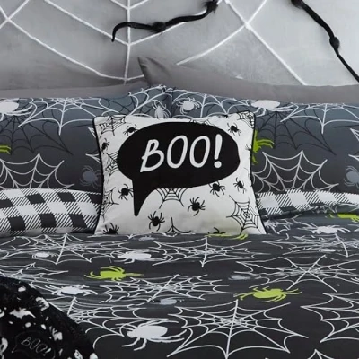 Bedlam Black Halloween Cushion (43 x 43cm) Reversible (2 Colours) Filling Included Piped Edge/Trim Spider with Cover Included/Cushion Insert Decorations