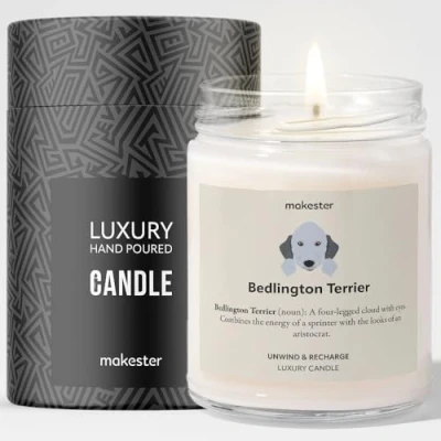 Bedlington Terrier Candle Over 100+ Breeds 220g Soy Wax Madagascan Vanilla & Jasmine Gift Dog Lover Candles by Makester