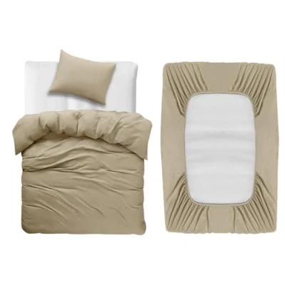 BedLooms 3 Piece Single Bedding Set Beige Duvet Cover Sets Fitted Sheet with Pilow case Soft and Fade Resistant Brushed Microfiber Quilt