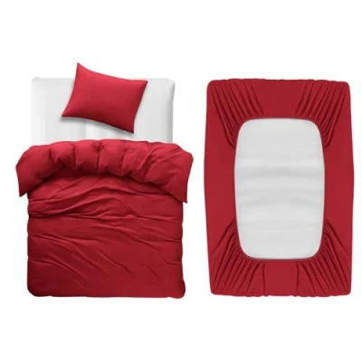 BedLooms 3 Piece Single Bedding Set Burgundy Duvet Cover Sets Fitted Sheet with Pilow case Soft and Fade Resistant Brushed Microfiber Quilt