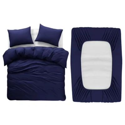 BedLooms 4 Piece King Bedding Set Duvet Cover, Fitted Sheet with Pillow cases Soft Brushed Microfiber Navy