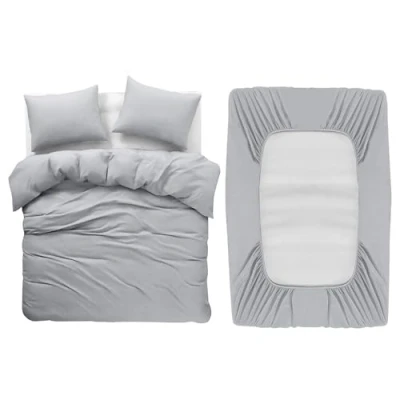 BedLooms 4 Piece Super King Bedding Set Silver Duvet Cover Sets Fitted Sheet with Pilow cases Superking Soft and Fade Resistant Brushed Microfiber Quilt