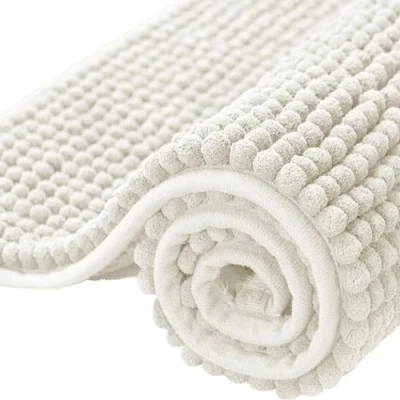 BedLooms Bath Mat Non Slip Anti Mould 40 x 60 cm White Chenille Bathroom Extra Soft & Fluffy Bathmat Machine Washable Super Water Absorption Shower