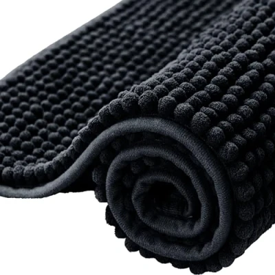 BedLooms Bath Mat Non Slip Anti Mould 50 x 80 cm Black Chenille Bah Mats for Bathroom Super Absorbent Machine Washable Soft & Fluffy Bathmat