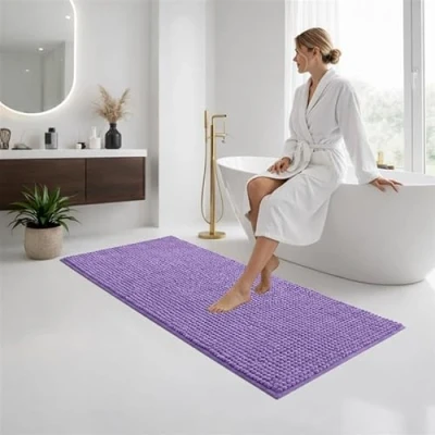 BedLooms Bath Mat Non Slip Anti Mould 60 x 90 cm Lilac Chenille Bathroom Extra Soft & Fluffy Bathmat Machine Washable Super Water Absorption Shower