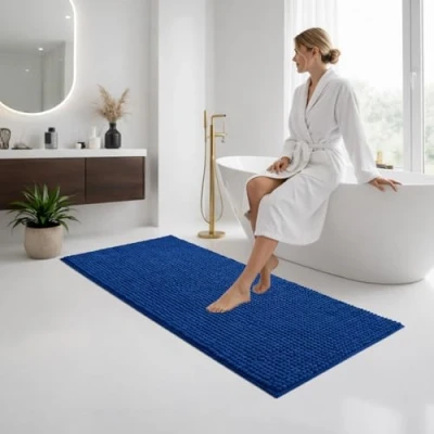 BedLooms Bath Mat Non Slip Anti Mould 60 x 90 cm Navy Chenille Bathroom Extra Soft & Fluffy Bathmat Machine Washable Super Water Absorption Shower