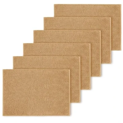 BedLooms Beige Bath Mat Non Slip Anti Mould (6 pack) Machine Washable Mats 40x60cm Chenille Bathroom Super Absorbent Extra Soft Fluffy Shower