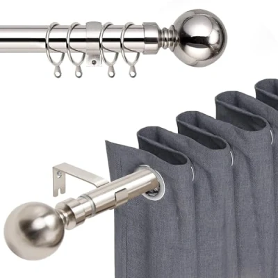 Customizable Length: Tailor your curtain poles precisely with adjustable options: 70 to 120cm (28 to 48 inches), 120 to 210cm (48 to 83 inches), and 160 to 300cm (63 to 118 inches). This set includes 1 x Curtain Pole, 2 x 60mm Finials, 2 x Hooks, 12 x Curtain Rings, and 1 x Fittings Pack. Durable Construction: Crafted from pure metal, our curtain rod offers exceptional strength to effortlessly support medium to heavy curtains. Its durable, plated finish resists rust and corrosion, Our 1-inch diameter curtain pole surpasses standard 5/8-inch decorative curtain rods in stability and longevity. Timeless Elegance: Enhance the aesthetic appeal of your space with the timeless design of our curtain pole, featuring sleek Plain metal round finials for visual balance, a reinforced central section for durability, and enduring color for sophistication. Elevate your home's style with ease. Versatile Application: From dining rooms to bedrooms, kitchens to offices our Window Curtain Pole is a versatile solution suitable for various settings and purposes. Whether you seek privacy or style, it's ideal to enhance any room's ambiance and functionality. Quality Assurance: We're committed to superior quality and 100% satisfaction. Contact us with any inquiries or concerns; we're here to assist you every step of the way.