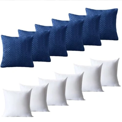 BedLooms Cushions with Covers Included 45 x cm Set of 12 (6 Navy Cushion Covers, 6 Inserts) Ultrasonic Square Throw Pillow Cases Decorative Sofa Invisible Zipper