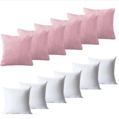 BedLooms Cushions with Covers Included 45 x cm Set of 12 (6 Pink Cushion Covers, 6 Inserts) Ultrasonic Square Throw Pillow Cases Decorative Sofa Invisible Zipper