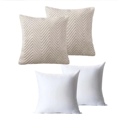 BedLooms Cushions with Covers Included 45 x cm Set of 4 (2 Beige Cushion Covers, 2 Inserts) Ultrasonic Square Throw Pillow Cases Decorative Sofa Invisible Zipper