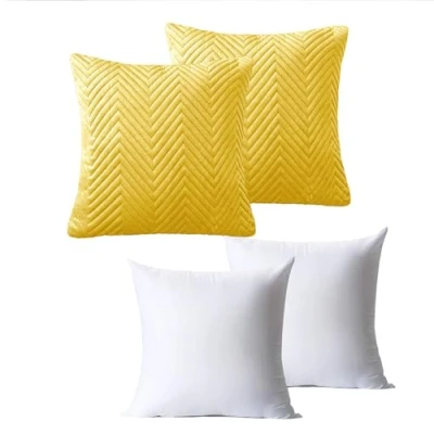 BedLooms Cushions with Covers Included 45 x cm Set of 4 (2 Ochre Cushion Covers, 2 Inserts) Ultrasonic Square Throw Pillow Cases Decorative Sofa Invisible Zipper