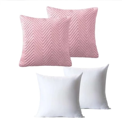 BedLooms Cushions with Covers Included 45 x cm Set of 4 (2 Pink Cushion Covers, 2 Inserts) Ultrasonic Square Throw Pillow Cases Decorative Sofa Invisible Zipper