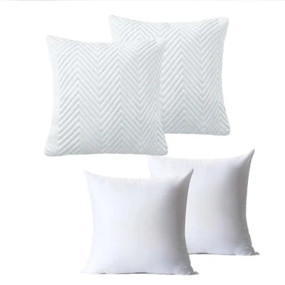 BedLooms Cushions with Covers Included 45 x cm Set of 4 (2 White Cushion Covers, 2 Inserts) Ultrasonic Square Throw Pillow Cases Decorative Sofa Invisible Zipper