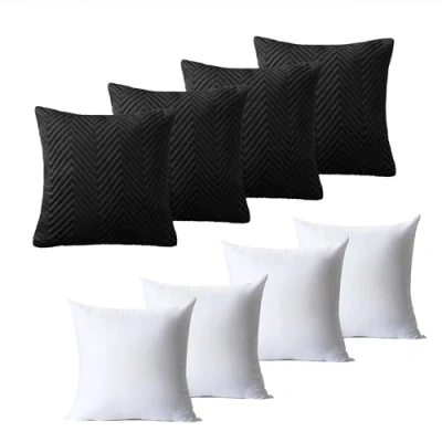 BedLooms Cushions with Covers Included 45 x cm Set of 8 (4 Black Cushion Covers, 4 Inserts) Ultrasonic Square Throw Pillow Cases Decorative Sofa Invisible Zipper