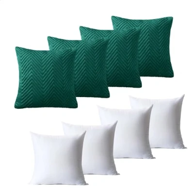 BedLooms Cushions with Covers Included 45 x cm Set of 8 (4 Emerald Cushion Covers, 4 Inserts) Ultrasonic Square Throw Pillow Cases Decorative Sofa Invisible Zipper