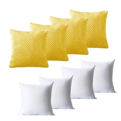 BedLooms Cushions with Covers Included 45 x cm Set of 8 (4 Ochre Cushion Covers, 4 Inserts) Ultrasonic Square Throw Pillow Cases Decorative Sofa Invisible Zipper