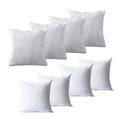 BedLooms Cushions with Covers Included 45 x cm Set of 8 (4 Silver Cushion Covers, 4 Inserts) Ultrasonic Square Throw Pillow Cases Decorative Sofa Invisible Zipper