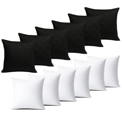 BedLooms Cushions with Covers Included 45x45 cm Black Pack of 6 (6 Cushion + Inners) Ultrasonic Diamond Velvet Square Throw Pillow Cases Invisible Zipper for Sofa Bedroom