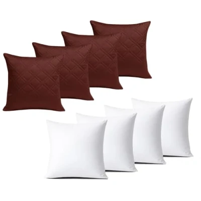 BedLooms Cushions with Covers Included 45x45 cm Burgundy Pack of 4 (4 Cushion + Inners) Ultrasonic Diamond Velvet Square Throw Pillow Cases Invisible Zipper for Sofa Bedroom