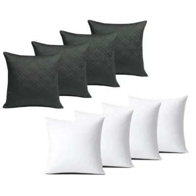 BedLooms Cushions with Covers Included 45x45 cm Charcoal Pack of 4 (4 Cushion + Inners) Ultrasonic Diamond Velvet Square Throw Pillow Cases Invisible Zipper for Sofa Office