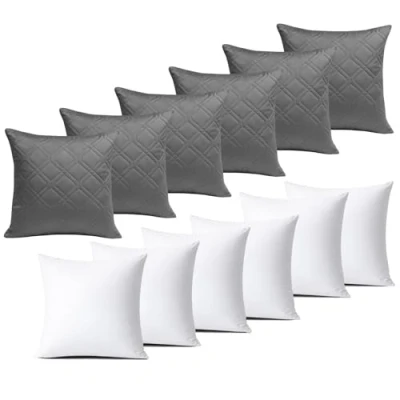 BedLooms Cushions with Covers Included 45x45 cm Grey Pack of 6 (6 Cushion + Inners) Ultrasonic Diamond Velvet Square Throw Pillow Cases Invisible Zipper for Home Sofa Bedroom