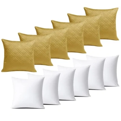 BedLooms Cushions with Covers Included 45x45 cm Ochre Pack of 6 (6 Cushion + Inners) Ultrasonic Diamond Velvet Square Throw Pillow Cases Invisible Zipper for Office Sofa Bedroom