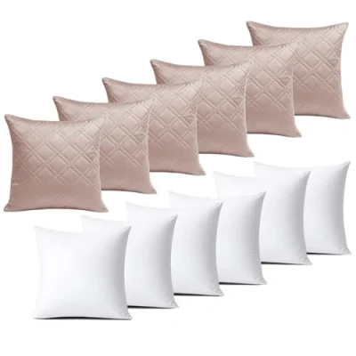BedLooms Cushions with Covers Included 45x45 cm Pink Pack of 6 (6 Cushion + Inners) Ultrasonic Diamond Velvet Square Throw Pillow Cases Invisible Zipper for Sofa Bedroom