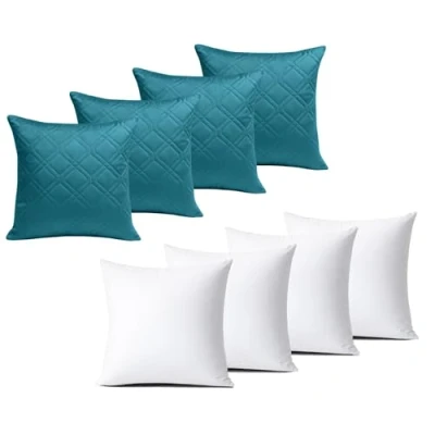 BedLooms Cushions with Covers Included 45x45 cm Teal Pack of 4 (4 Cushion + Inners) Ultrasonic Diamond Velvet Square Throw Pillow Cases Invisible Zipper for Sofa Bedroom
