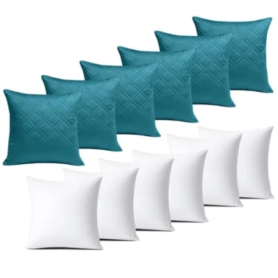 BedLooms Cushions with Covers Included 45x45 cm Teal Pack of 6 (6 Cushion + Inners) Ultrasonic Diamond Velvet Square Throw Pillow Cases Invisible Zipper for Sofa Bedroom