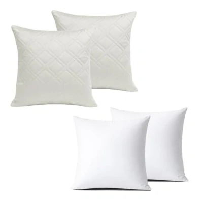 BedLooms Cushions with Covers Included 45x45 cm White Pack of 2 (2 Cushion + Inners) Ultrasonic Diamond Velvet Square Throw Pillow Cases Invisible Zipper for Sofa Bedroom