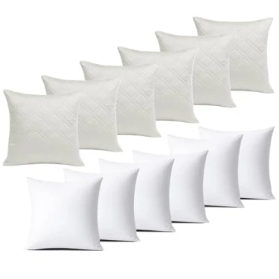 BedLooms Cushions with Covers Included 45x45 cm White Pack of 6 (6 Cushion + Inners) Ultrasonic Diamond Velvet Square Throw Pillow Cases Invisible Zipper for Sofa Bedroom