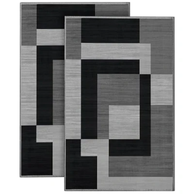 BedLooms Door Mat 60x110 cm 2 Pack Non Slip Heavy Duty Indoor Outdoor muddy mats for dogs Modern Welcome Front Doormat Dirt Trapper Kitchen Floor Inside Outside Doormats, Milo Black & Grey
