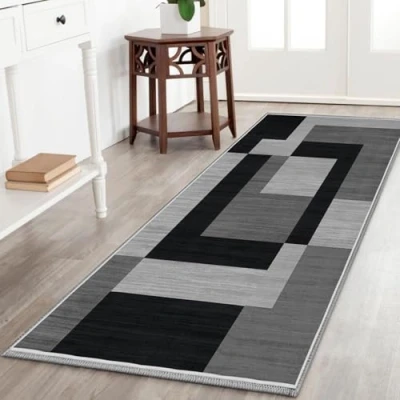BedLooms Door Mat Indoor Outdoor 80x150 cm Non Slip Heavy Duty muddy mats for dogs UK Trendy Print Welcome Front Doormat Dirt Trapper Kitchen Floor Inside Outside Doormats, Milo Black & Grey