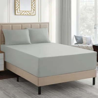 Bedlooms Double Fitted Sheet 16 Inch 40 Cm Extra Deep Pocket Bed Sheets 100% Soft Breathable Brushed Microfiber Shrink and Fade Resistance Bedding (Silver)