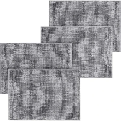 BedLooms Light Grey Bath Mat Non Slip Anti Mould (4 pack) Machine Washable Mats 40x60cm Chenille Bathroom Super Absorbent Extra Soft Fluffy Shower
